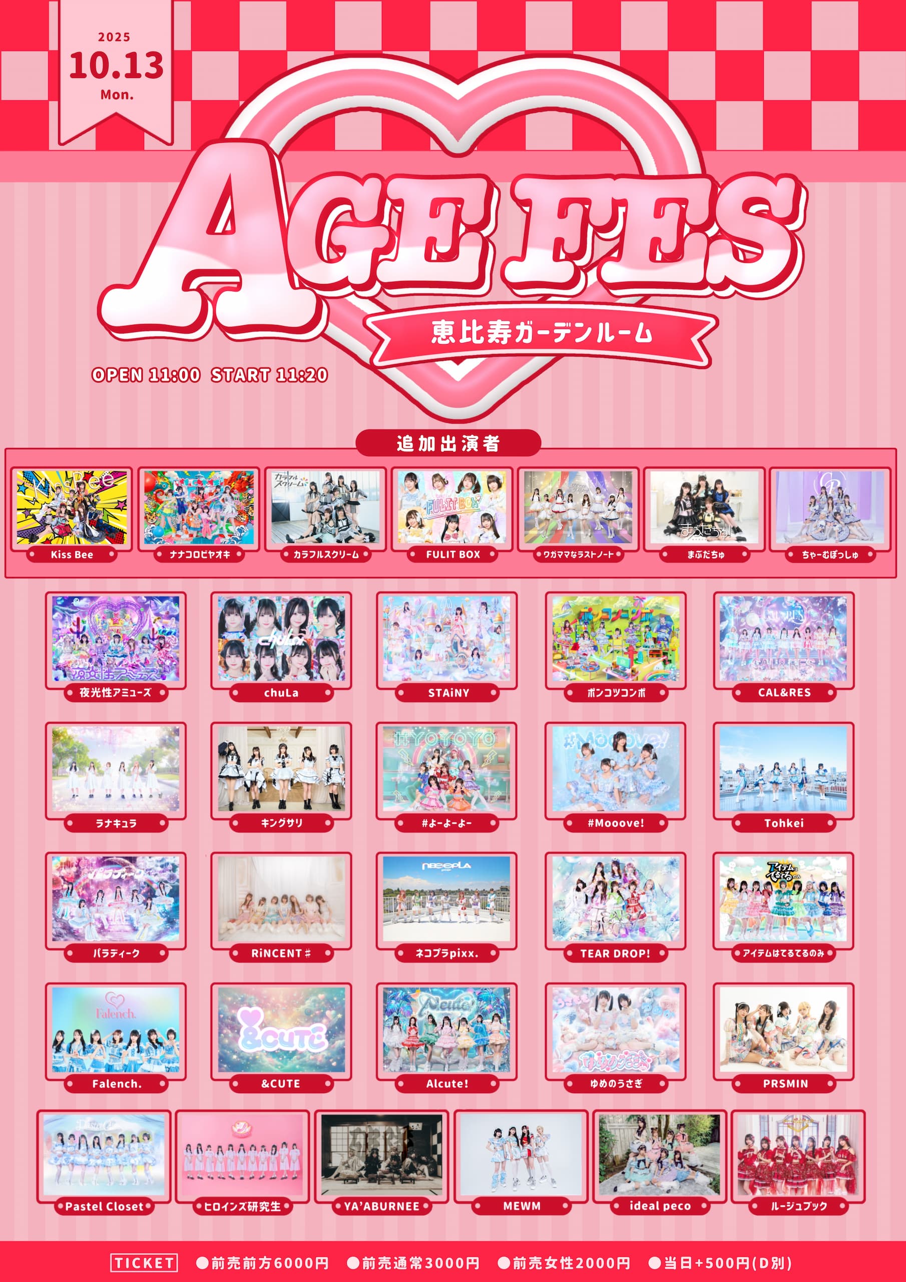 前売前方6000円/前売通常3000円/前売女性2000円/当日+500円(D別)