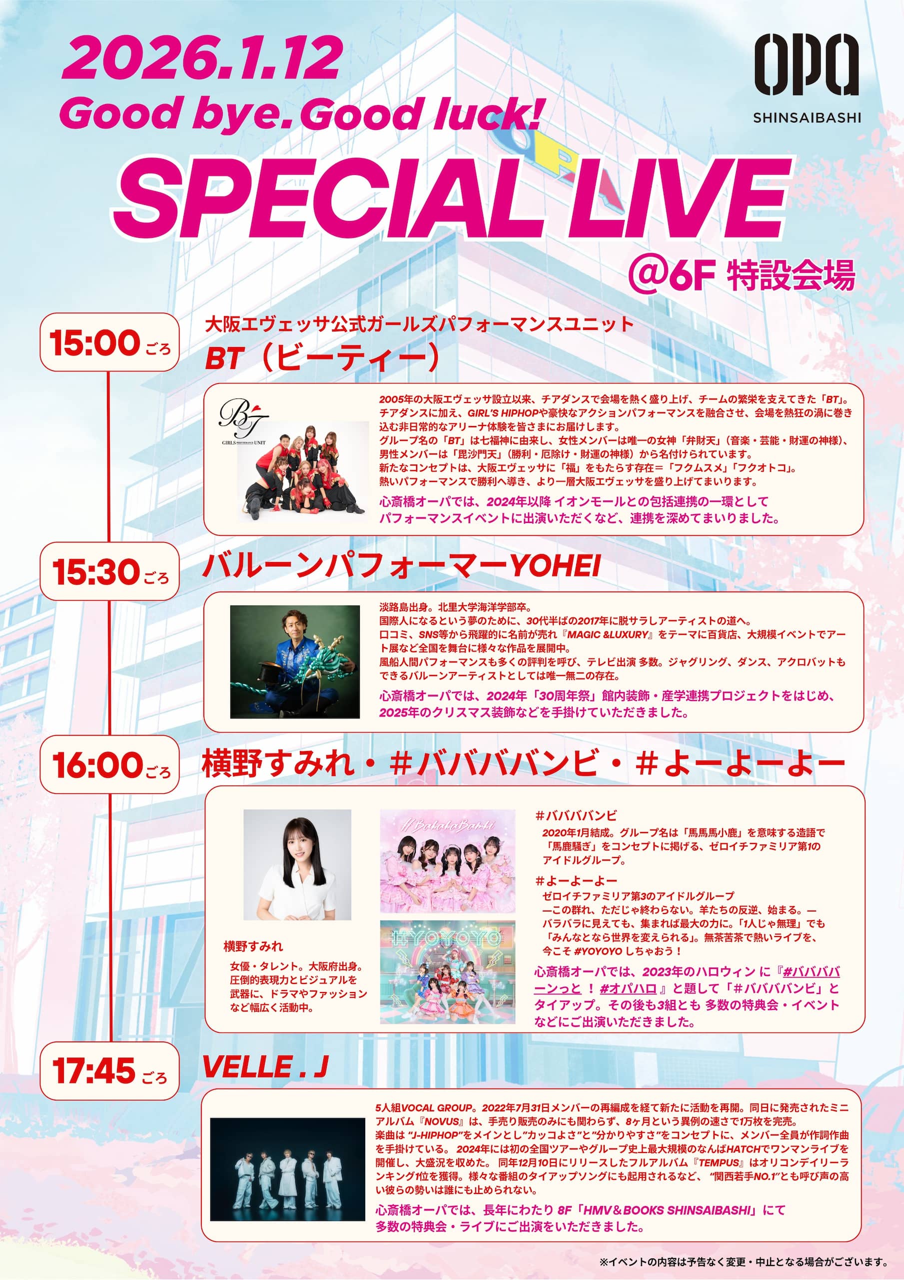 心斎橋オーパでは、長年にわたり 8F「HMV&BOOKS SHINSAIBASHI」にて多数の特典会・ライブにご出演をいただきました。