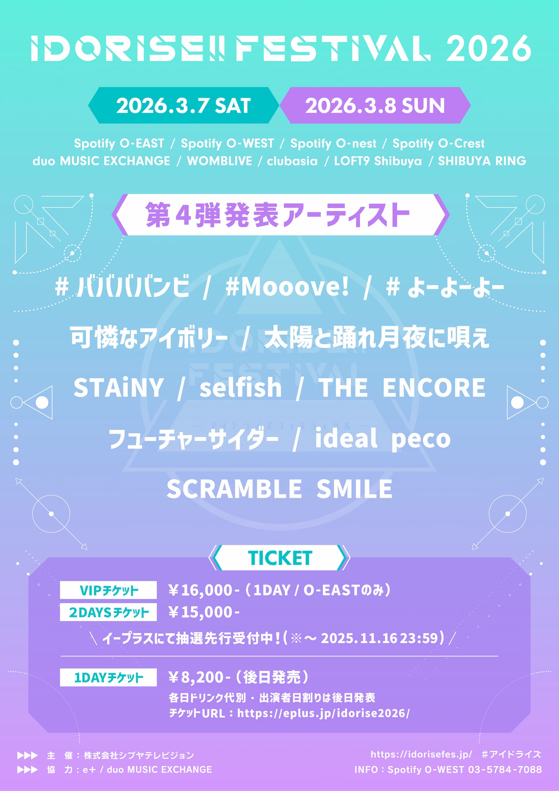 ・VIPチケット:¥16,000(VIP観覧エリアはO-EASTのみ)