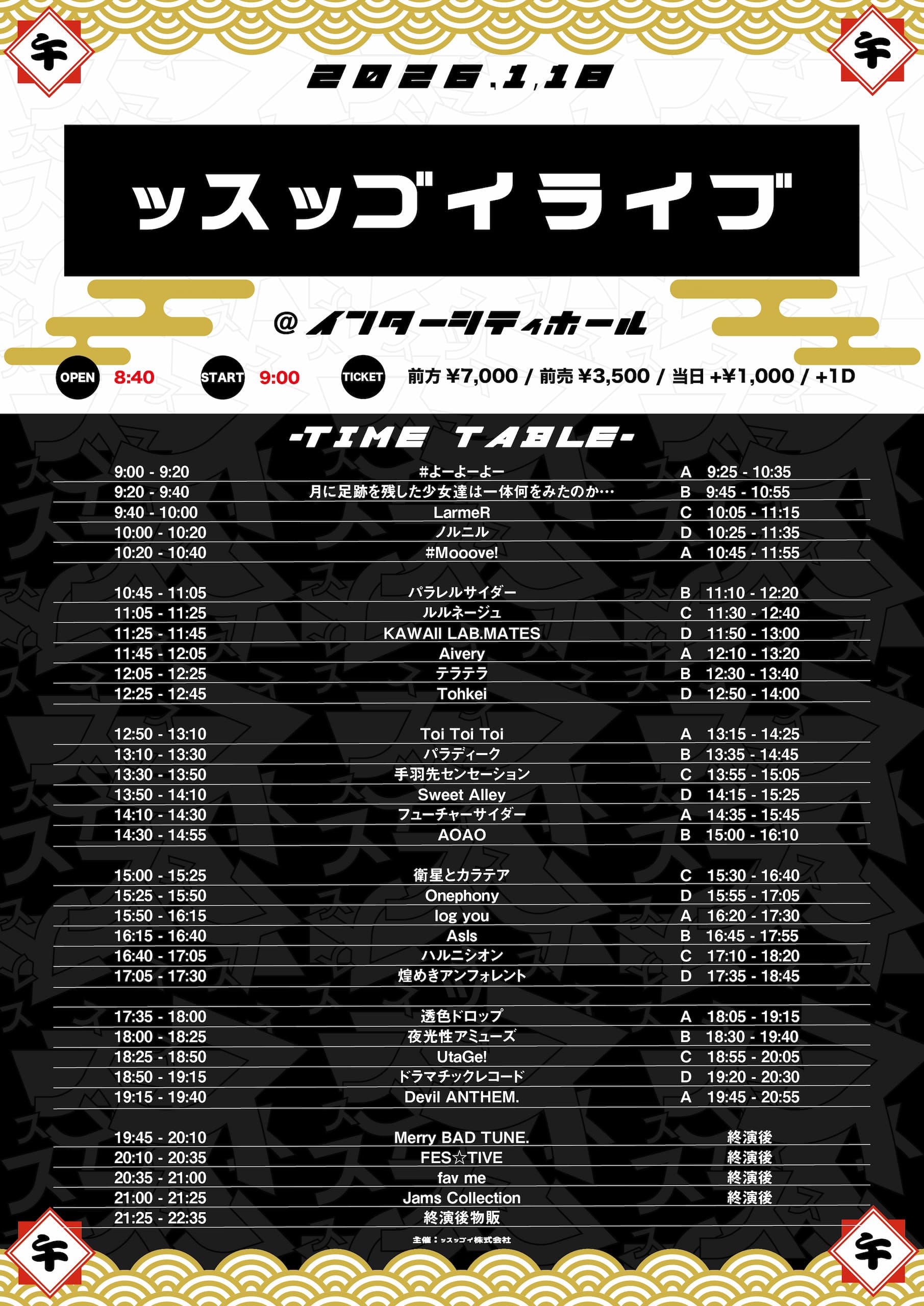 ・イベントなど開始時間、終了時間が変更になる可能性もございますので、予めご了承ください。