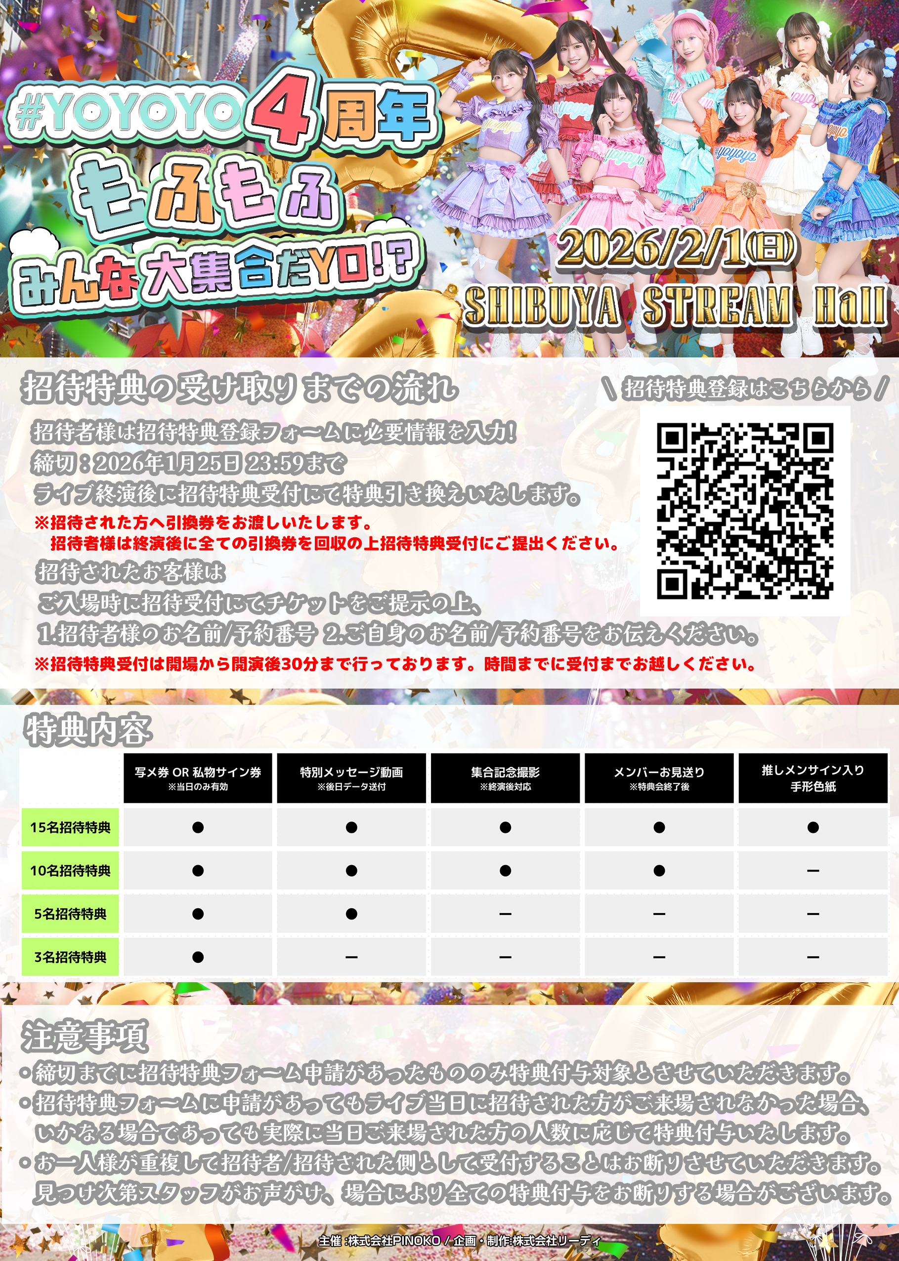 ライブの終了後、出演メンバーとの特典会(チェキ撮影)を開催いたします。 特典会の整列については、ライブ終了後、係員の指示に従ってください。