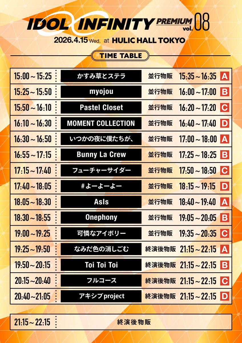 アキシブproject / AsIs / いつかの夜に僕たちが、 / かすみ草とステラ / 可憐なアイボリー / Toi Toi Toi / なみだ色の消しごむ / Pastel Closet / Bunny La Crew / フューチャーサイダー / フルコース / myojou / MOMENT COLLECTION / #よーよーよー / Onephony